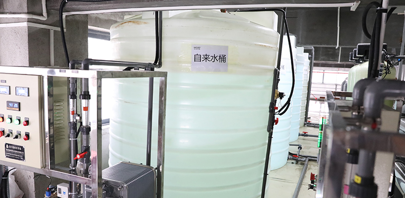 并且公司內(nèi)部安裝超純水EDI設(shè)備,設(shè)置了四種儲(chǔ)水桶,分為自來水、純水、超純水和濃水(區(qū)別于電鍍廢水)。 通過自來水軟化,由砂石、活性炭、樹酯和棉芯過濾,用反滲透方法提純制作純水,再通過EDI處理,變?yōu)槌兯? 純水產(chǎn)生過程中會(huì)同步出現(xiàn)含雜質(zhì)比較高的濃水,我們不進(jìn)行排放,而是通過管道,通往樓頂儲(chǔ)水桶,用來作廢氣處理噴淋塔和沖洗衛(wèi)生間使用,充分利用水的資源。而制造超純水過程產(chǎn)生的濃水,回收進(jìn)自來水再次投入使用。